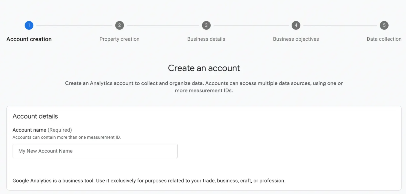 - Go to analytics.google.com and click "Admin" → "Create Account"