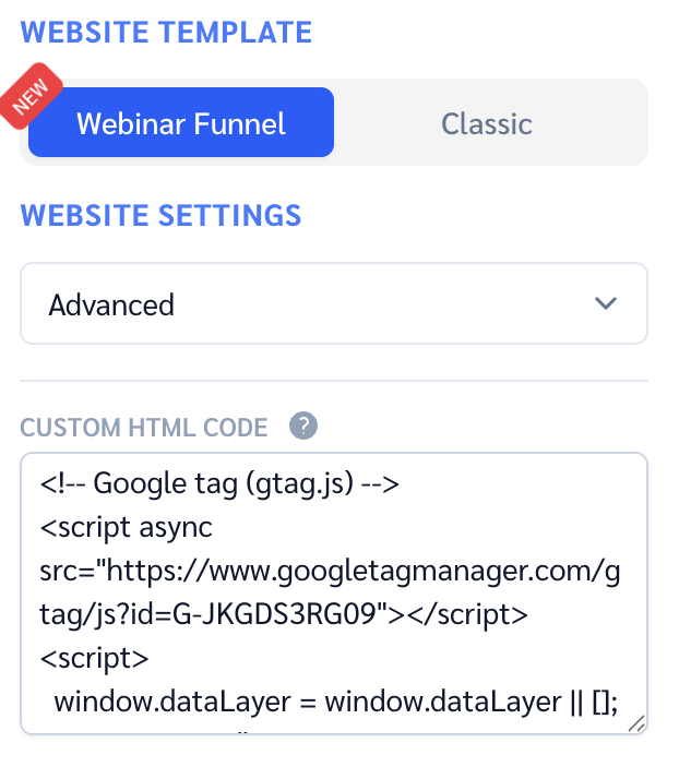 6. In your Annuities Genius website editor, navigate to "Advanced" → "Custom HTML"