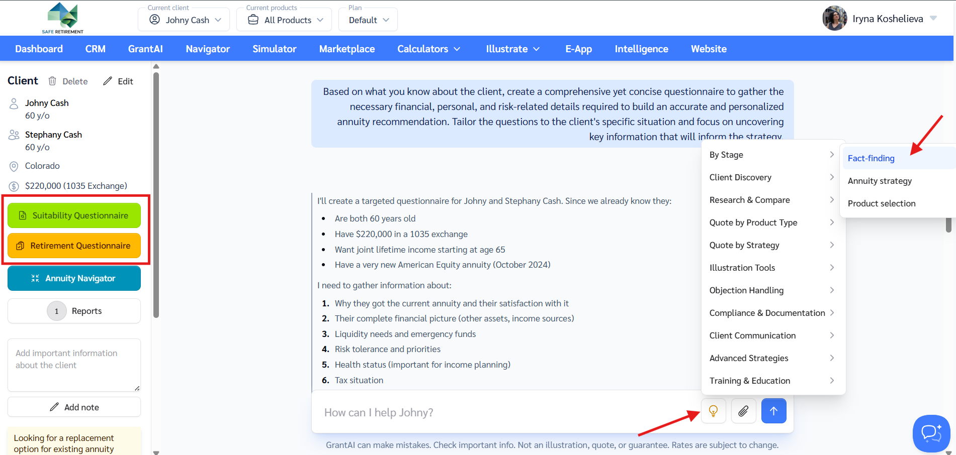 Going forward, you can utilize the Suitability and Retirement Freedom questionnaires for compliance and planning. Plus, we are leaning heavily into GrantAI for conversational fact-finding. It’s a more natural, modern way to gather client data.